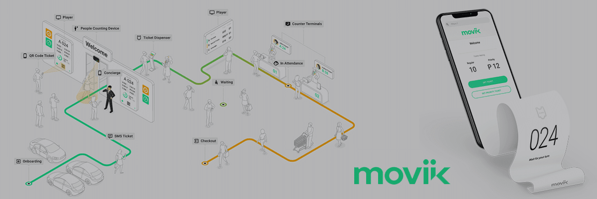For at komme ind i køsystemet anvender Moviik en række digitale dispensere, som har det til fælles, at de udsteder virtuelle billetter ved hjælp af kundens egen mobiltelefon. Det betyder, at kunden ikke skal i berøring med enheder, som kan være smittebærere. Dermed skaber du en mere tryg oplevelse for dine kunder.